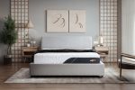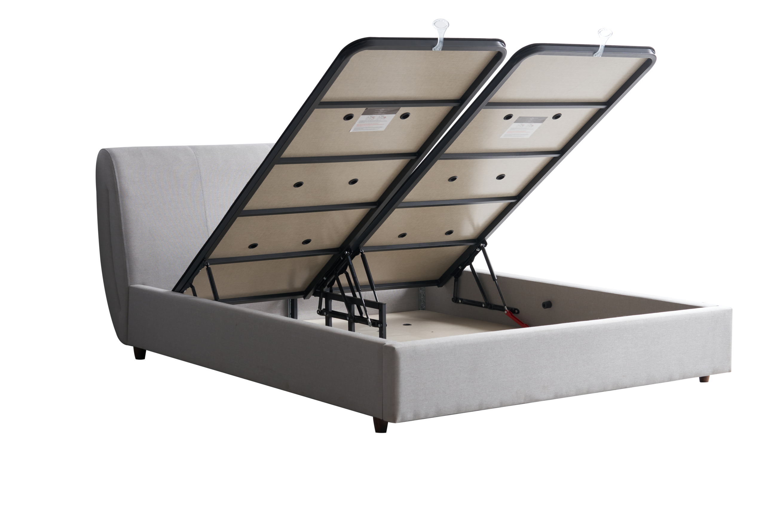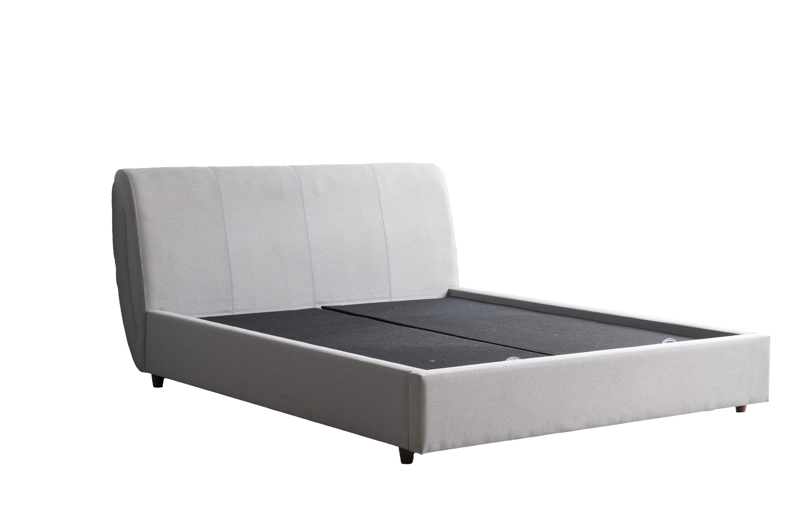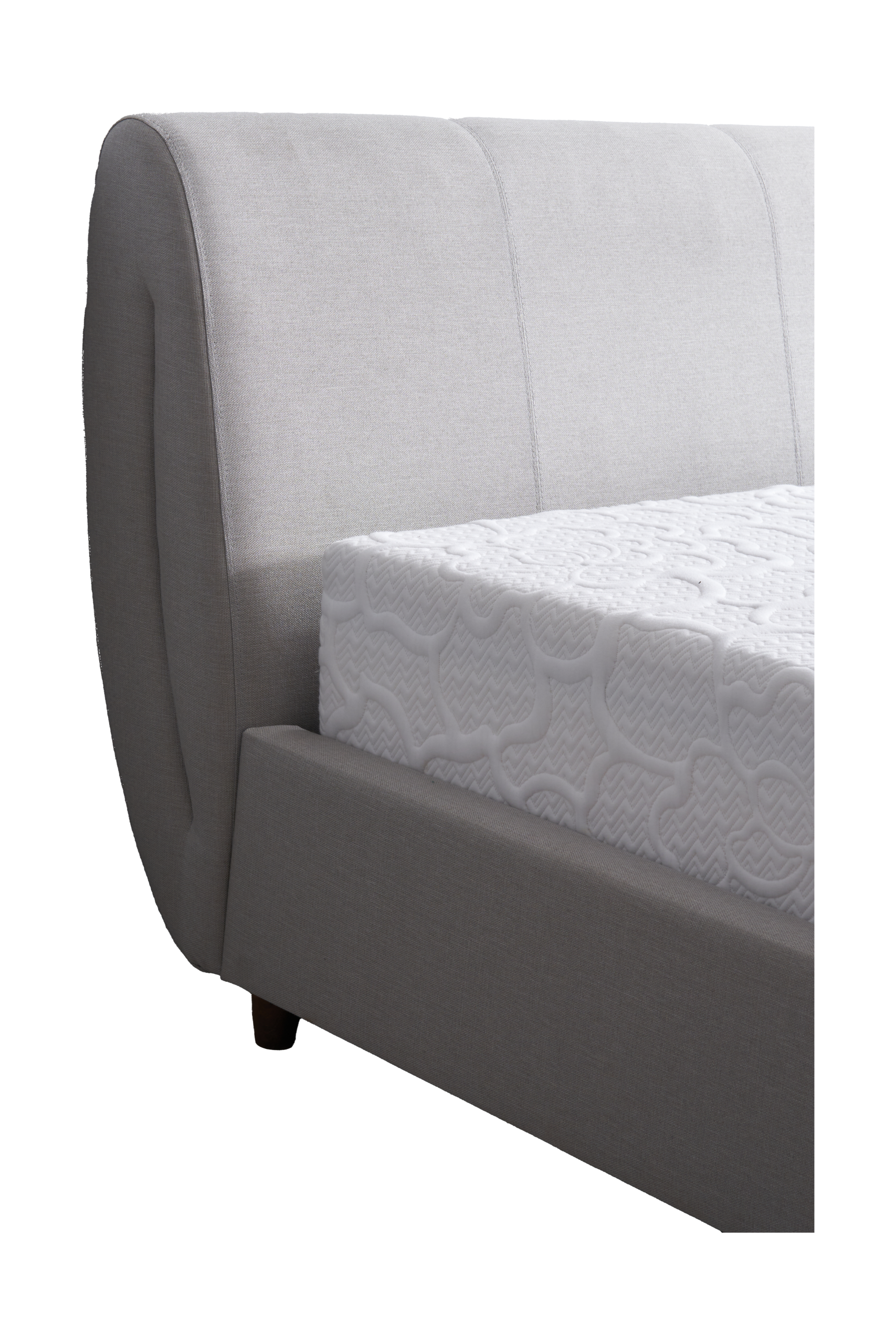 Curved headboard design for enhanced comfort while reading or watching movies.